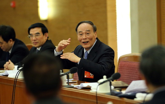 3月5日,中共中央政治局常委、中央纪委书记王岐山参加十二届全国人大二次会议北京代表团的审议。新华社记者 刘卫兵 摄